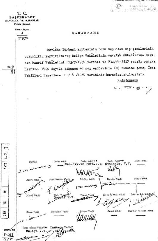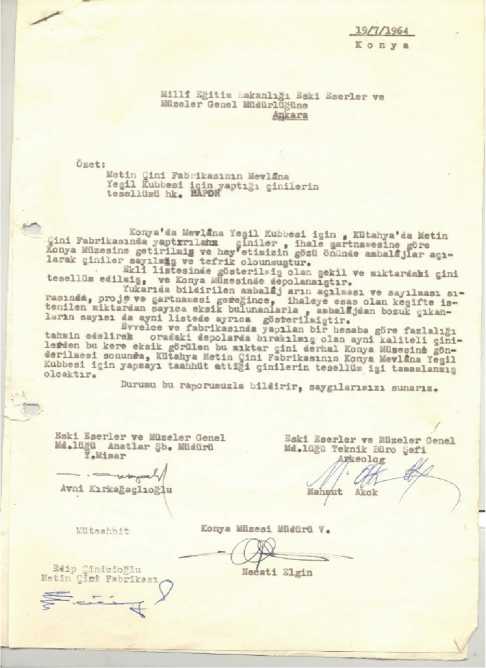 (Konya Müze Müdürlüğü 1964 yılı tamirat dosyası, belge no:006)
