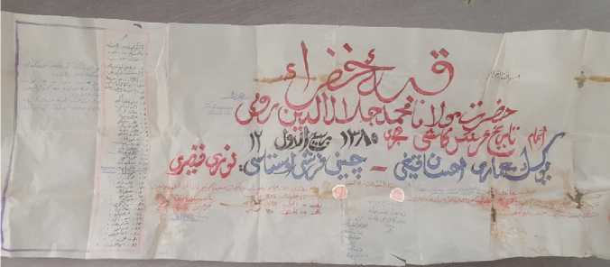 Hasan Özönder, “Mevlânâ Türbe ve Külliyesinin Tamir ve İlaveler Kronolojisi” adlı çalışmasının notlar kısmında Mevlânâ Müzesi Müdür Yardımcılığından emekli merhum Necati Elgin ile İstanbul’daki görüşmelerinde “son tamirata dair hazırladığı vesikaları, gelecek nesillere intikal ettirmek için türbenin çeşitli yerlerine yerleştirdiğini ifade ettiğini” belirtmiştir. Necati Elgin, kubbenin onarım tarihinin, usta ve amelelerinin, mahiyetinin, malzeme, süre ve masraflar hakkında bilgilerin yer aldığı bir belge hazırlamış ve bu belgeyi çoğaltırmıştır. Belgelerden birini “Gümüş Eşik”in mihrap tarafında bulunan gümüş kaplamaların altına; ikincisini mescidin dış kapısının demir kuşaklarının (gülmıh) altına ve üçüncüsünü de Kubbe-i Hadrâ âleminin altına yerleştirmiştir[32]. Âlemin altına yerleştirilen belge, Kubbe-i Hadrâ çinilerinin 2020 Temmuz ayında başlayan sökümü esnasında çıkarılmıştır (G.13). Belgenin bulunması, bu kubbenin 1965 yılından bugüne onarım görmediği anlamına gelmektedir.